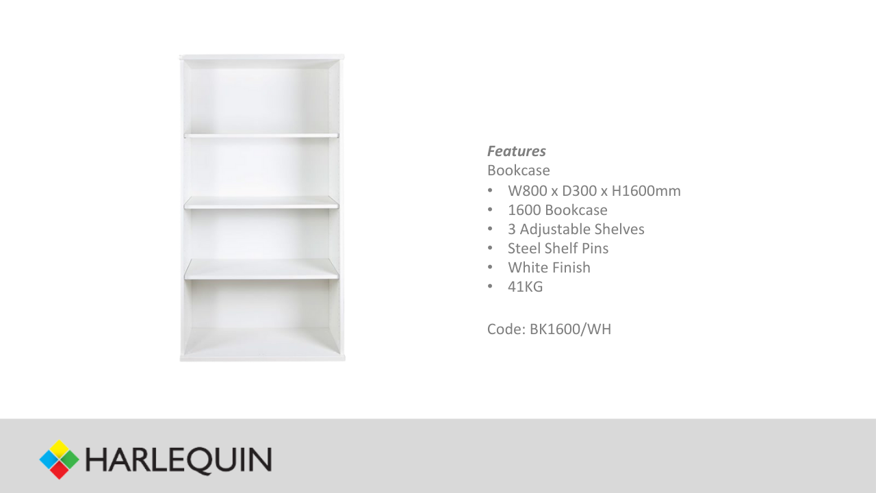 White 1600h Open Bookcase Unit