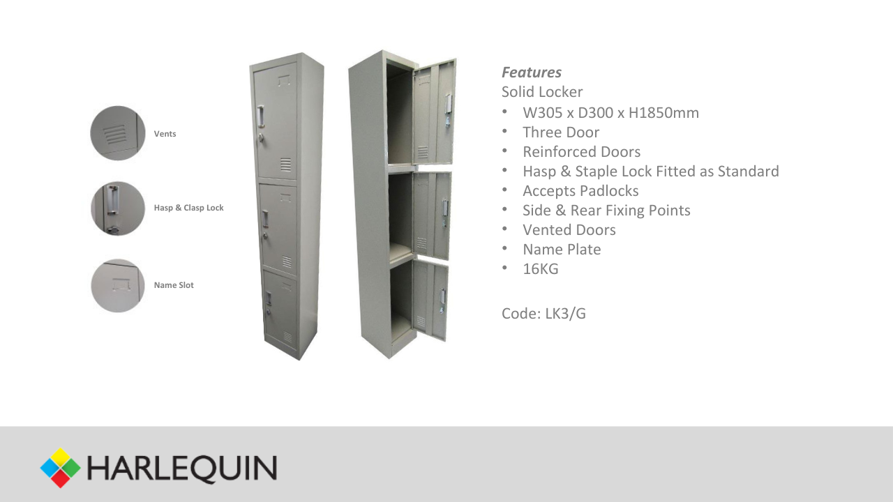 Grey 12 x 12 Three Door Locker c/w Tap Lock
