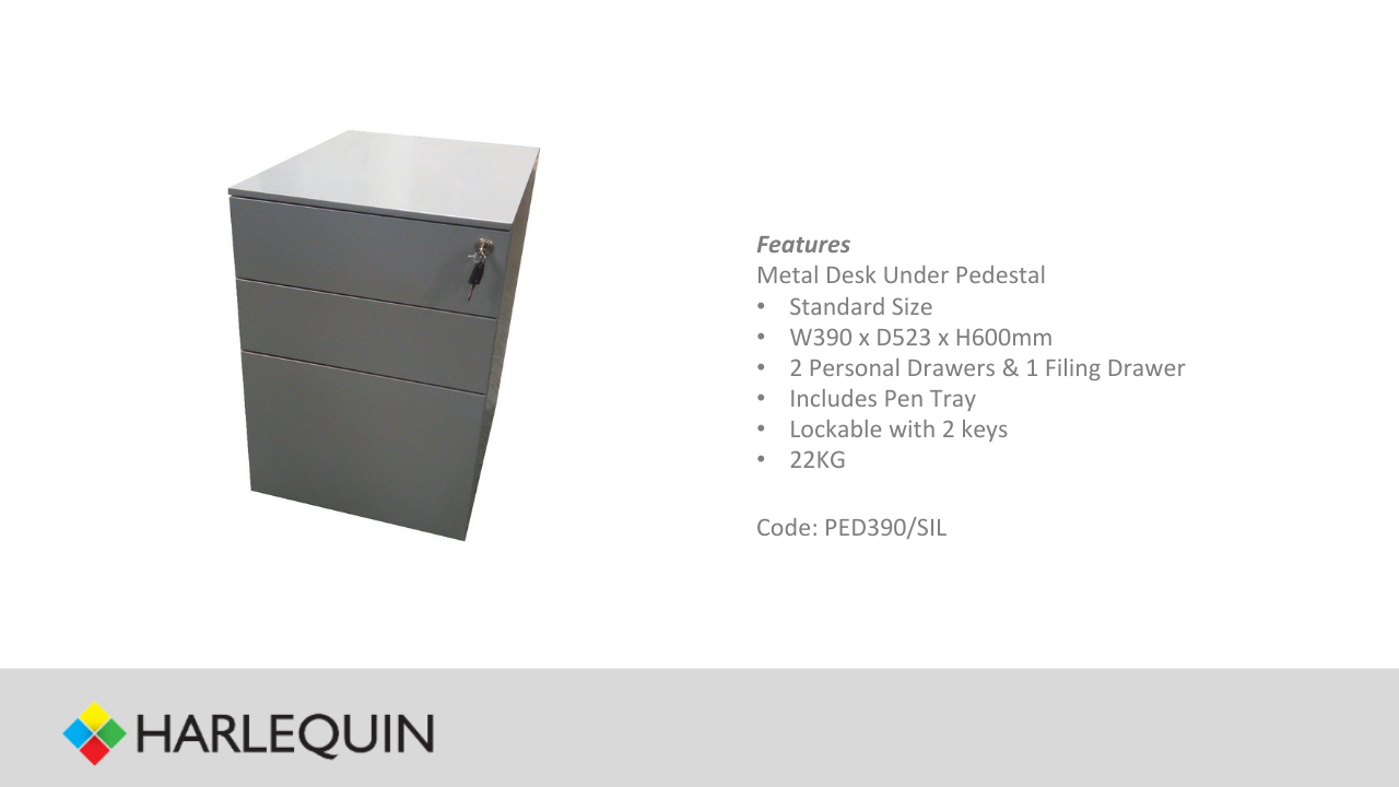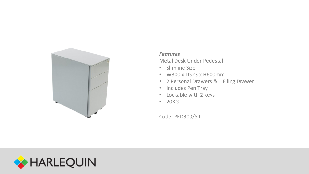 Silver 3 Dr Metal Filing Pedestal (Slimline)