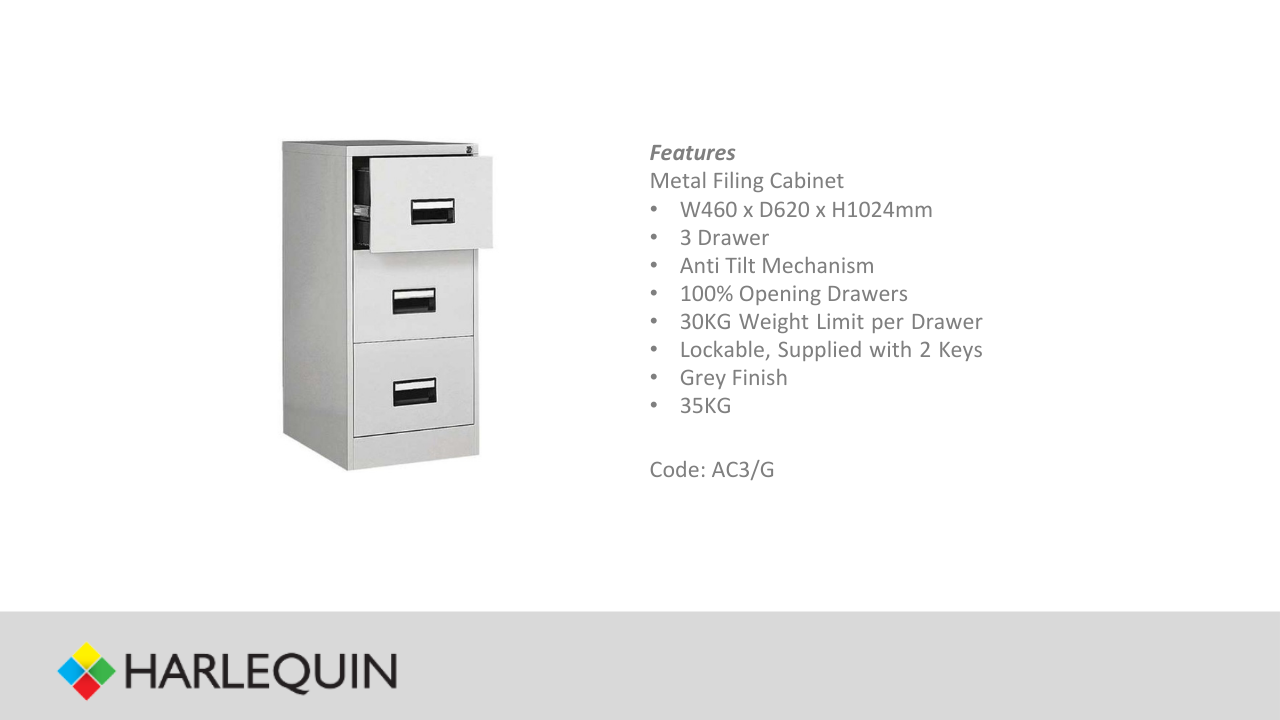 Grey 3 Drawer Filing Cabinet