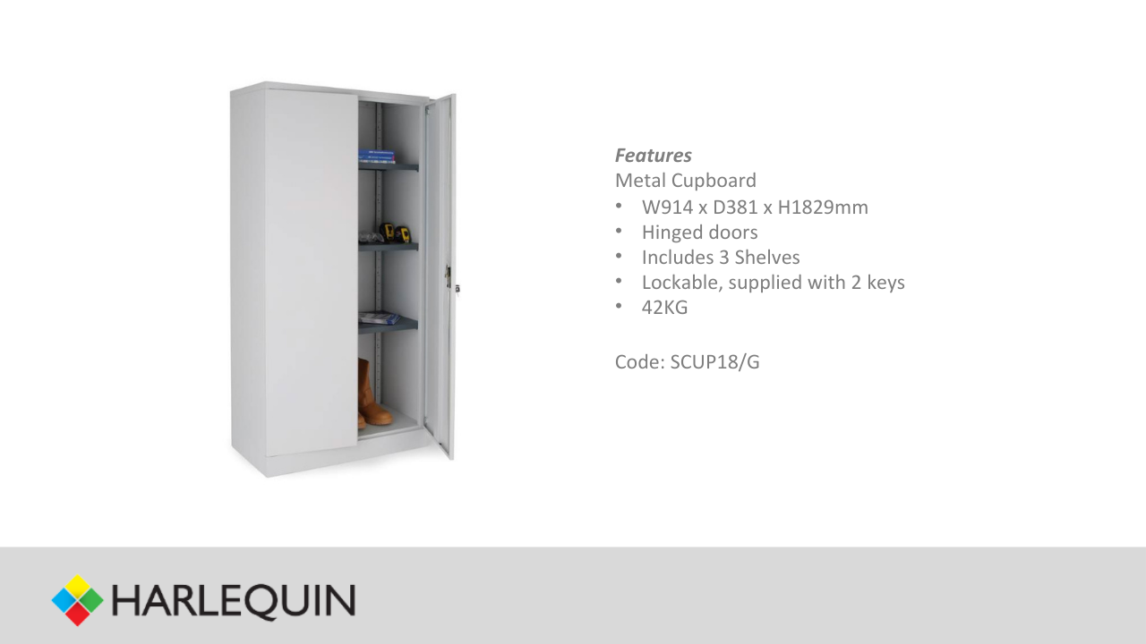 Grey Steel 1829 x 914 x 381 Two Door Cupboard c/w 3 Shelves