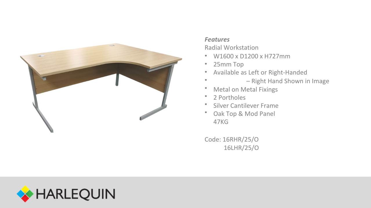 Oak 1600mm R/H Radial Workstation