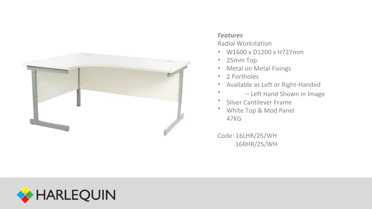 White 1600mm L/H Radial Workstation